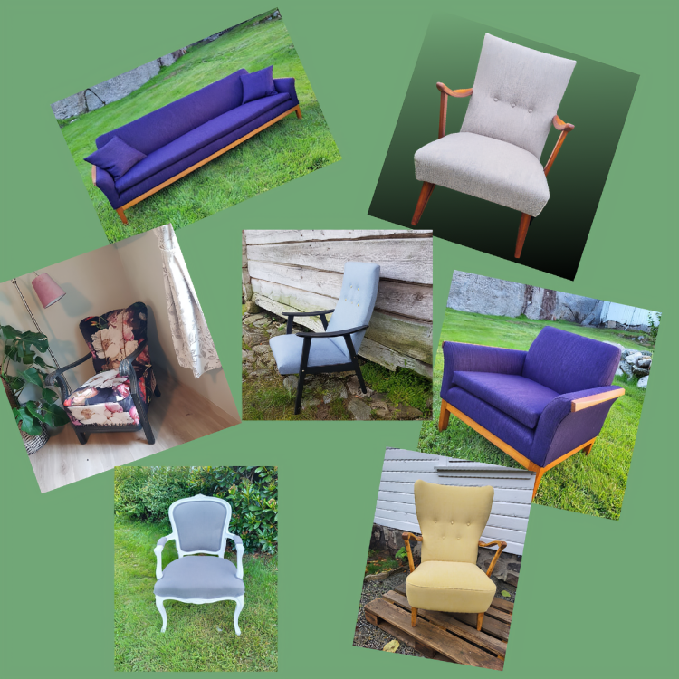 Her ser du noen av mine tidligere prosjekter – alt fra stoler og sofaer til andre møbler som har fått en fornyelse. Jeg elsker utfordringer og tar på meg oppdrag for å hjelpe deg med å bevare dine kjære møbler, samtidig som vi skaper et unikt uttrykk som passer deg og hjemmet ditt.